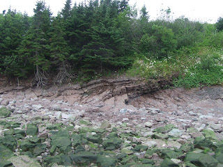I've been tallying up a list of new sites I wanted to visit and Tynemouth Creek was on the top of that list. The Tynemouth Creek coastlines, located in Southern New Brunswick between Saint Martins and Saint John, has been the site of newly discovered trackways which had been few before. The formations of this site are about Lower Pennsylvanian (Carboniferous) in age, with the occasional sliver of Pre-Cambrian rock crossing some of the local rock, and Triassic sections further East towards St. Martins.